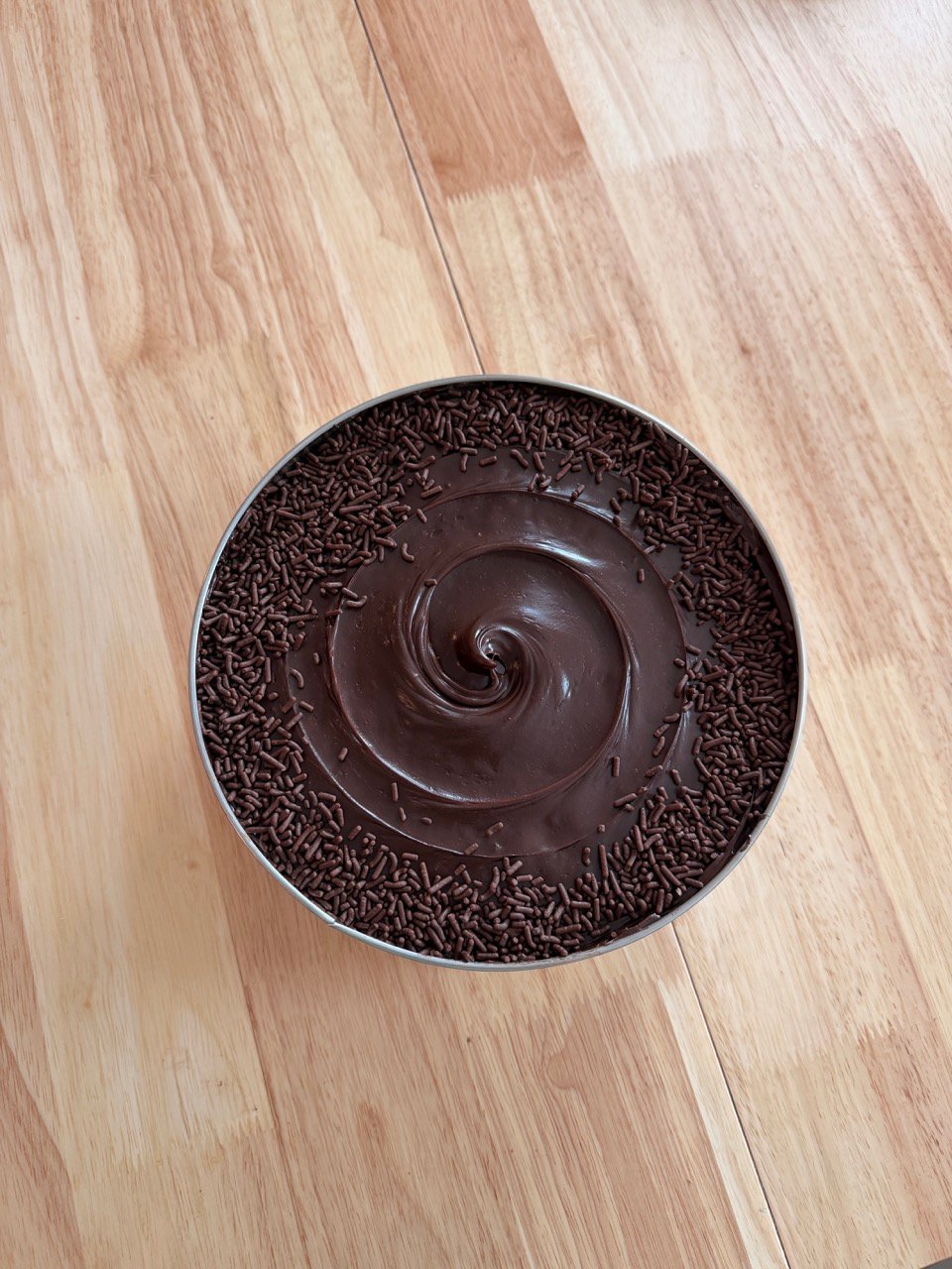 Inside, you’ll find three layers of signature ultra-moist chocolate sponge, generously filled with my handcrafted chocolate fudge and packed into an 8″ tin. It is designed to be opened and enjoyed directly with a spoon.
