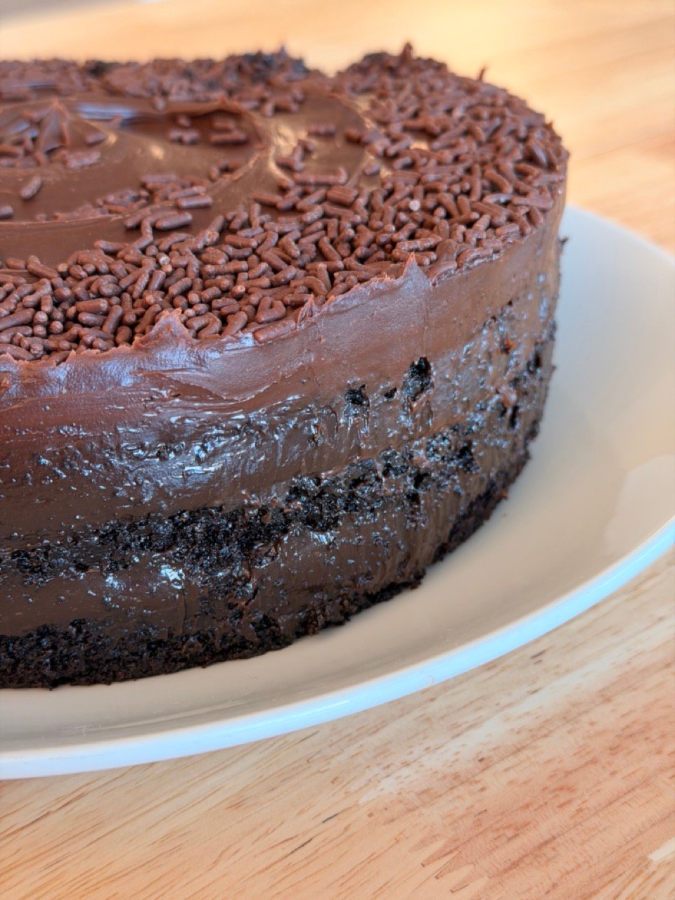 Three layers of ultra-moist chocolate cake and handcrafted fudge. Rich, fudgy, and perfectly spoon-worthy.
